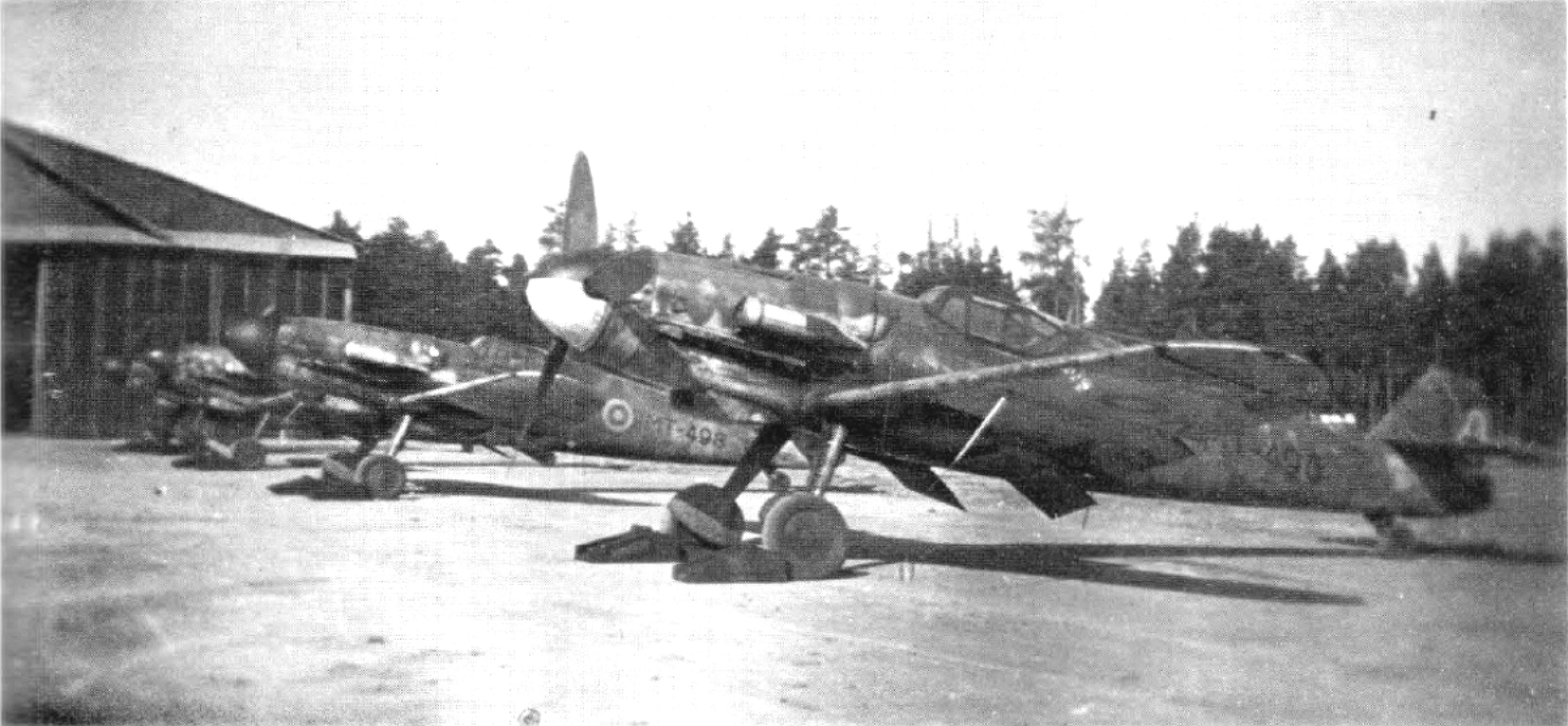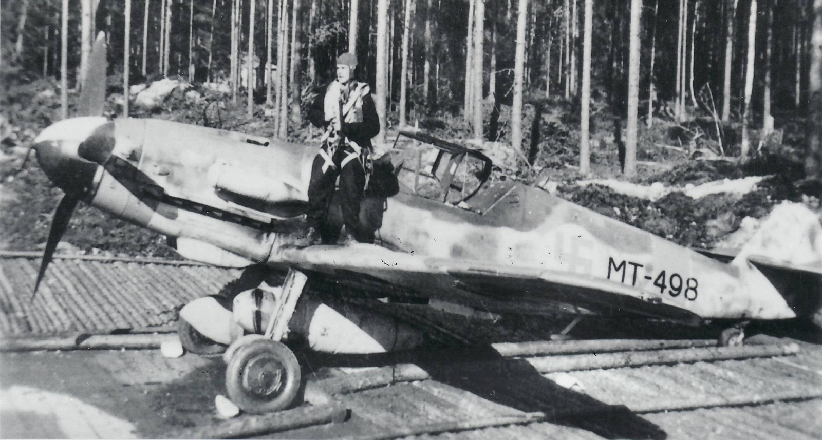 MT-498 with 300-Liter Belly Fuel Tank & On Corrugated Wood In Dispersal In Finland After Delivery On August 17, 1944