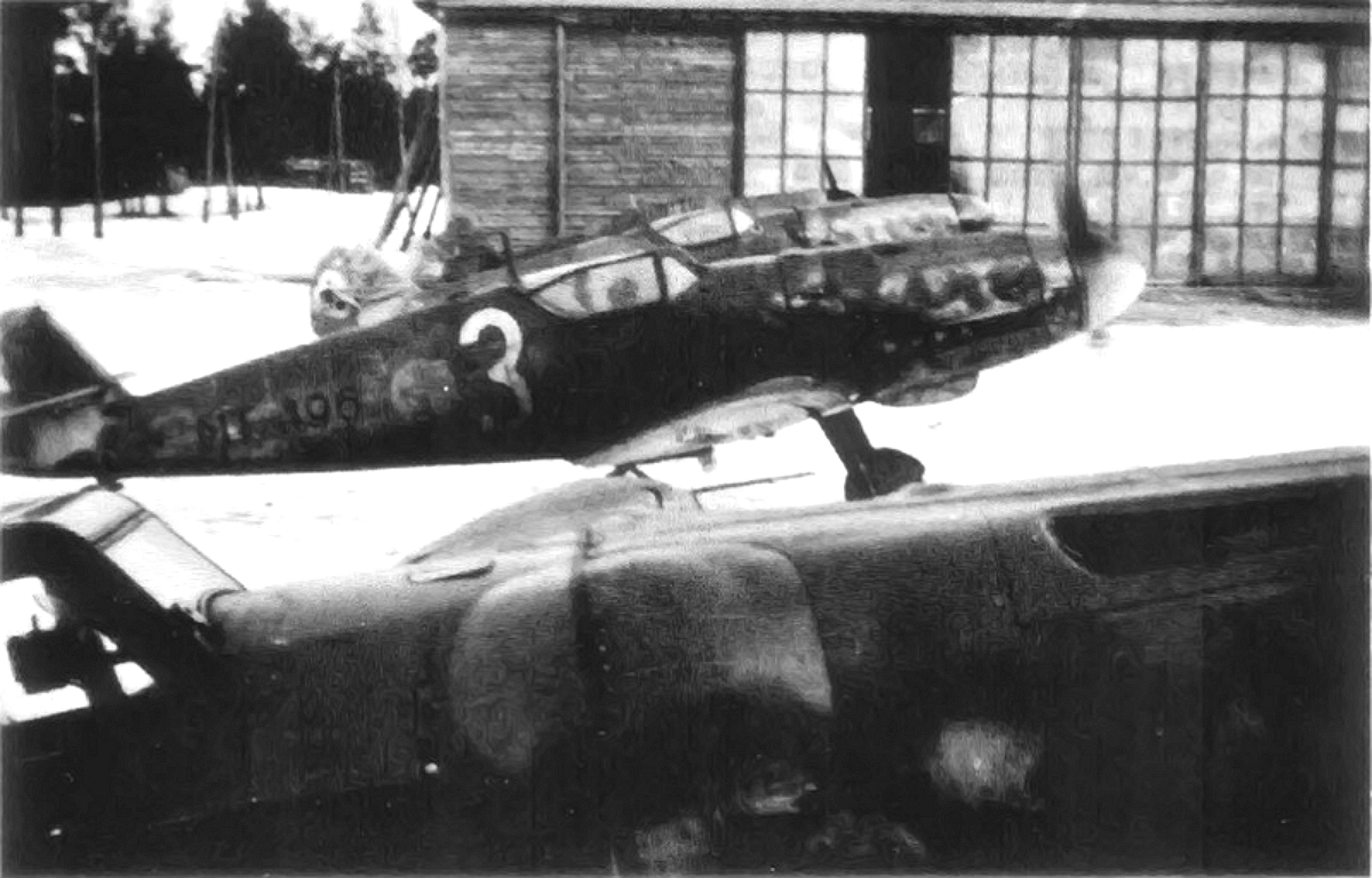 MT-496 Warming Up DB605 Engine with Other Aircraft Next to Hanger At Utti Airfield, Kuovola, Finland End of 1947