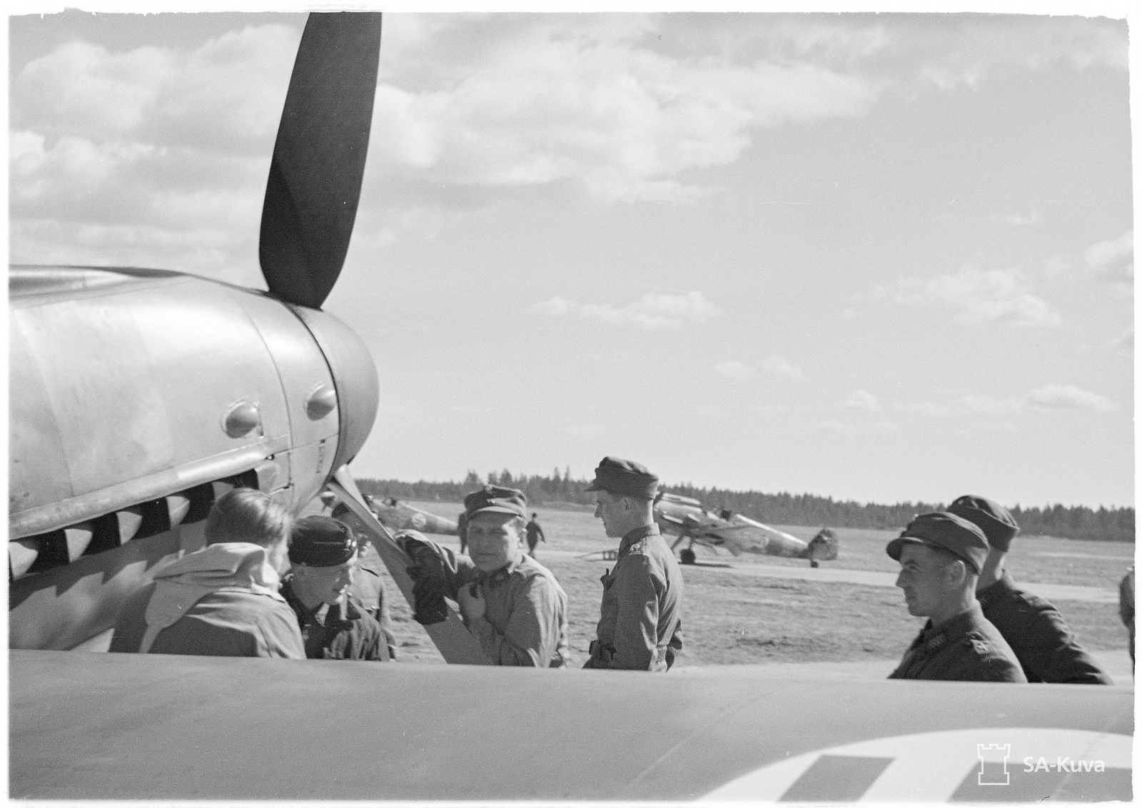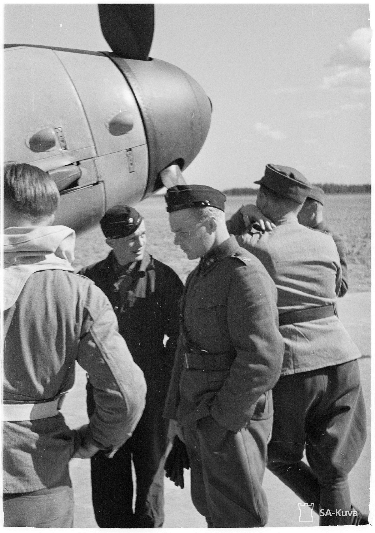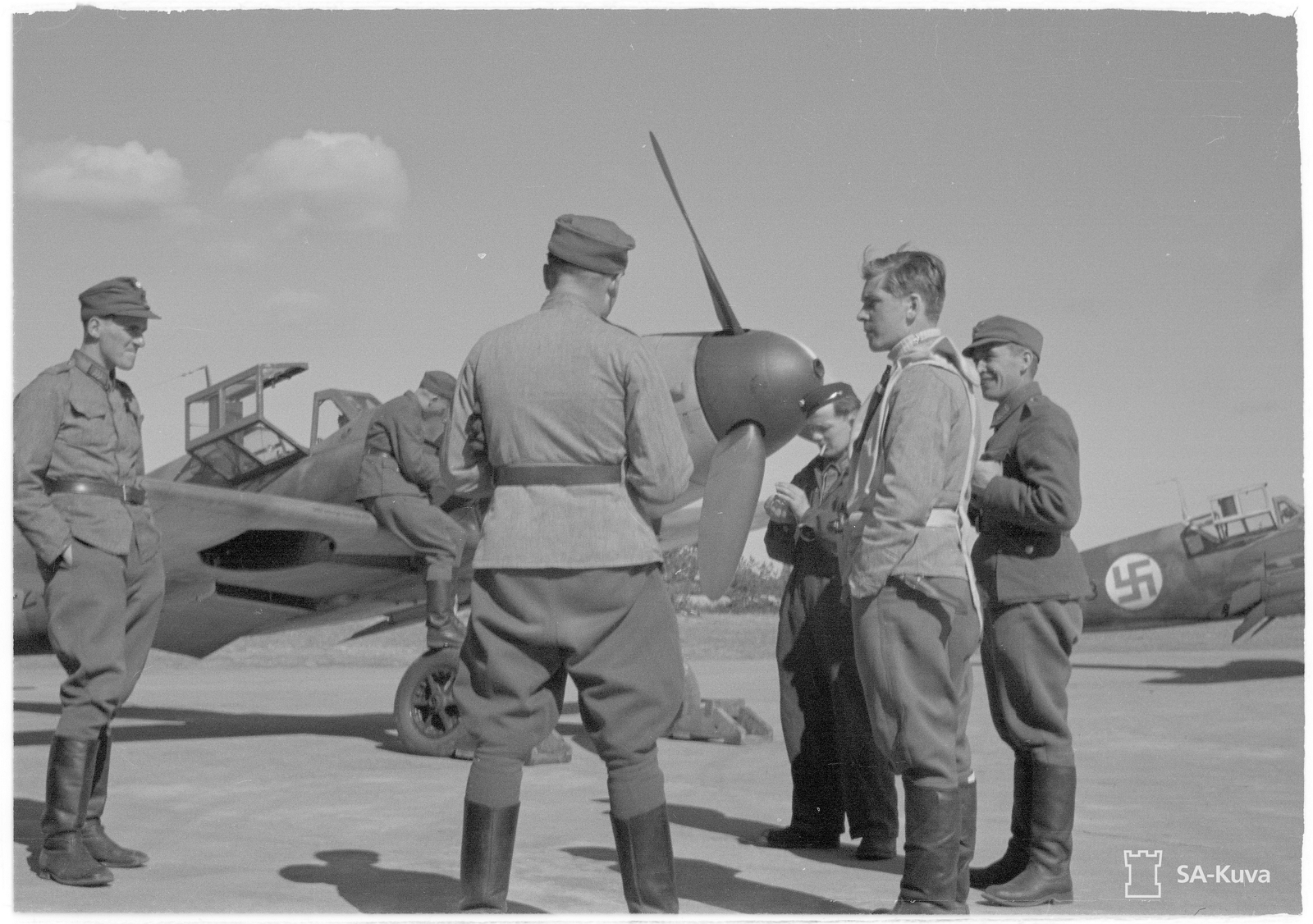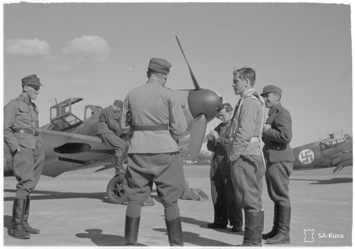 1st Lieutnant [Luutnantti] Altto Kalevi 'Kale' Tervo(Left to Right) with One Crewman & Two Officers & Two Ground Crew By