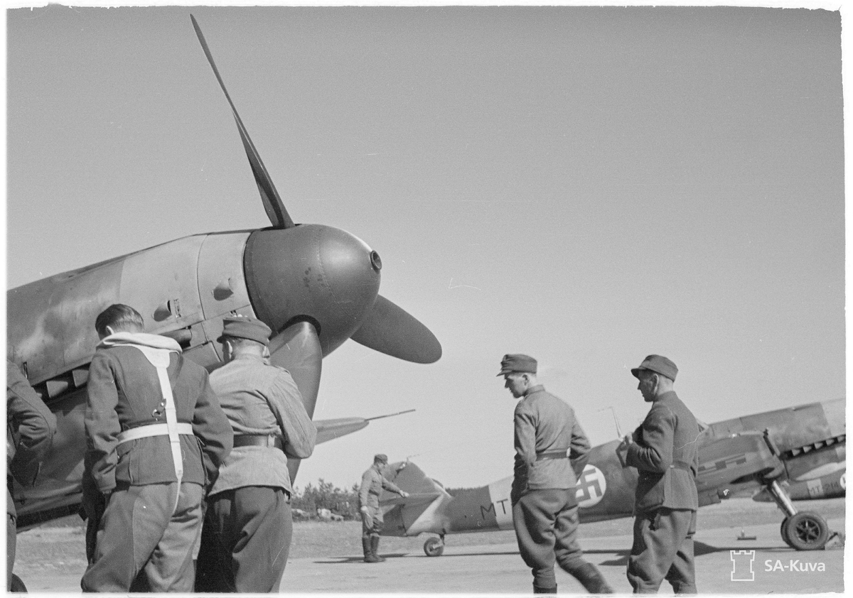 MT-208 with Sand Filter & In Front of Aircraft Is 3./HLeLv 28 Commander Captain [Kapteeni] Oiva Emil Kalervo 'Oippa' Tuominen