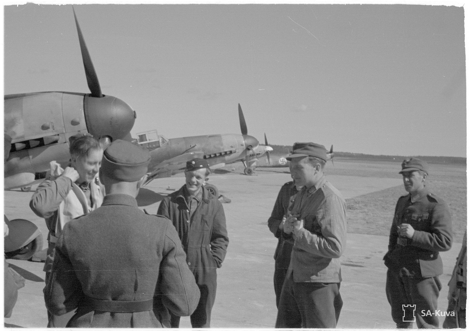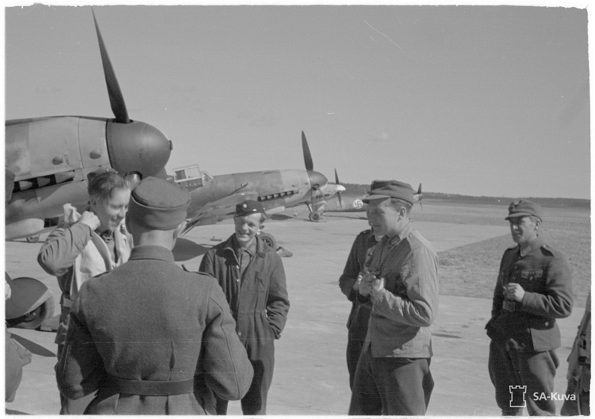 1st Lieutenant [Luutnantti] Altto Kalevi 'Kale' Tervo In Back of Two Crewmen(Left) & One Mechanic & One Officer(Right) & Behind