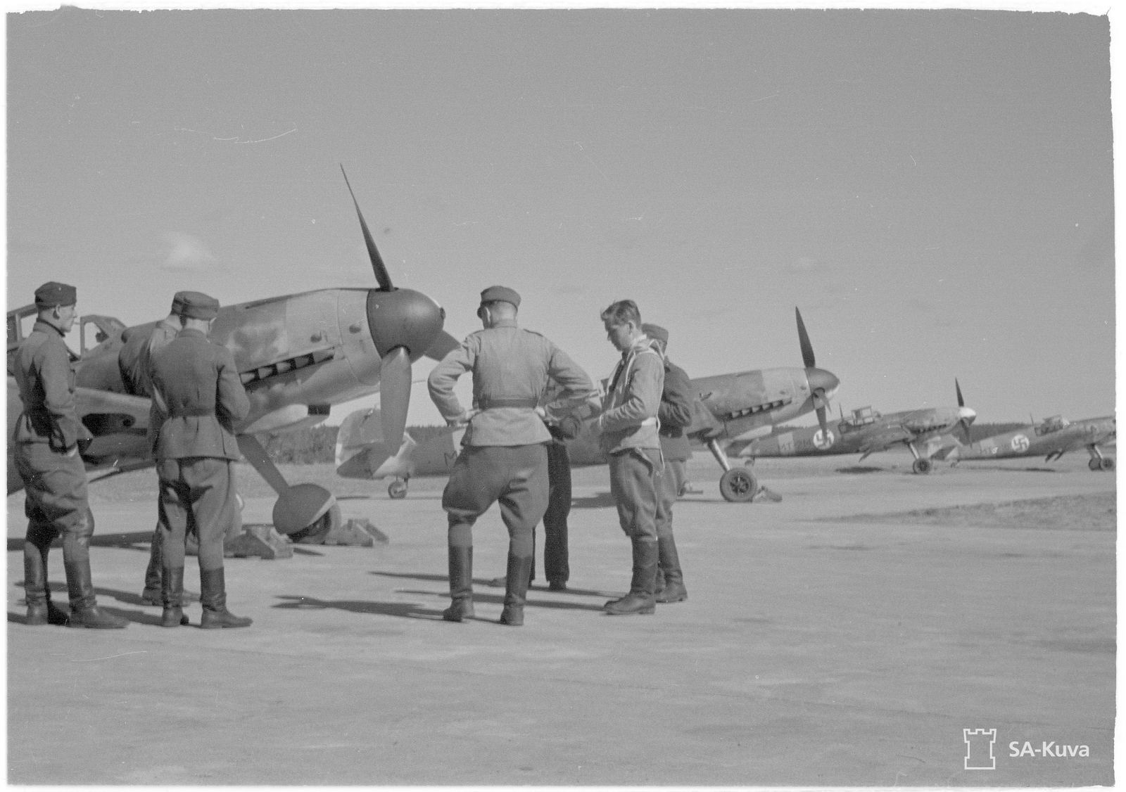 1st Lieutenant [Luutnantti] Altto Kalevi 'Kale' Tervo(Left) & One Officer & Four Ground Crew By