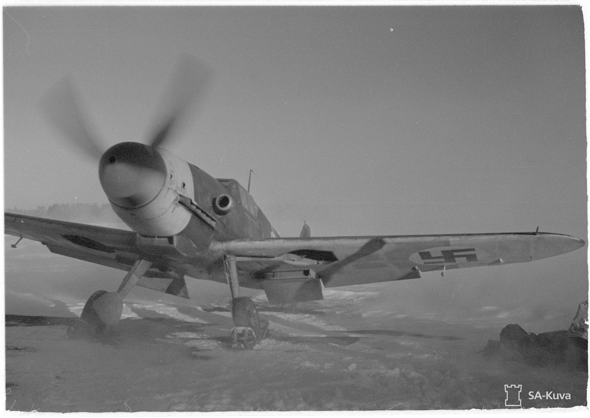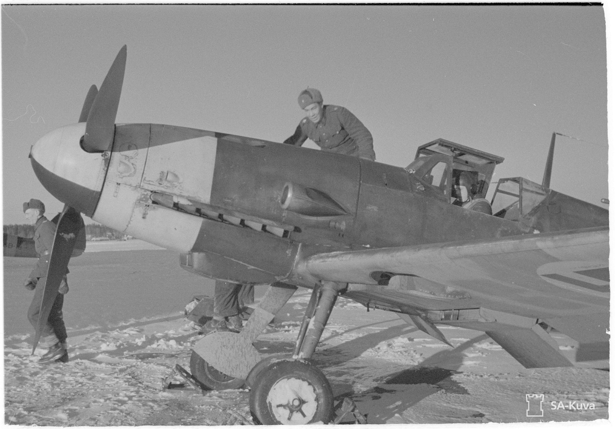 Me109G-6 FAF MT-4xx with 2nd Lieutenant [Vanrikki] Mauno Ilmari 'Manne' Kirjonen Sitting In the Cockpit Finland 1944