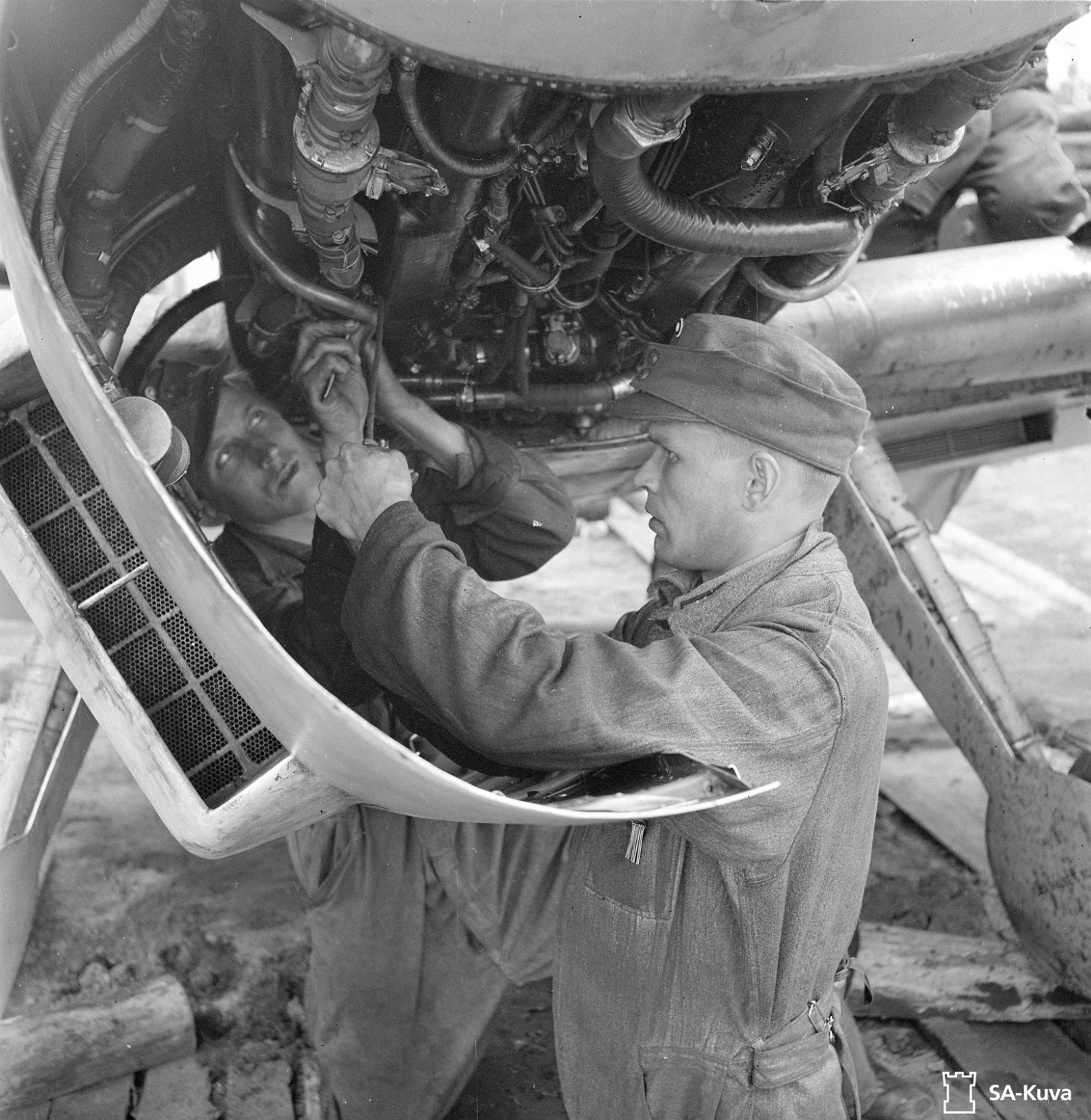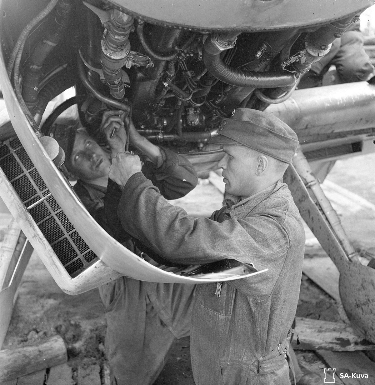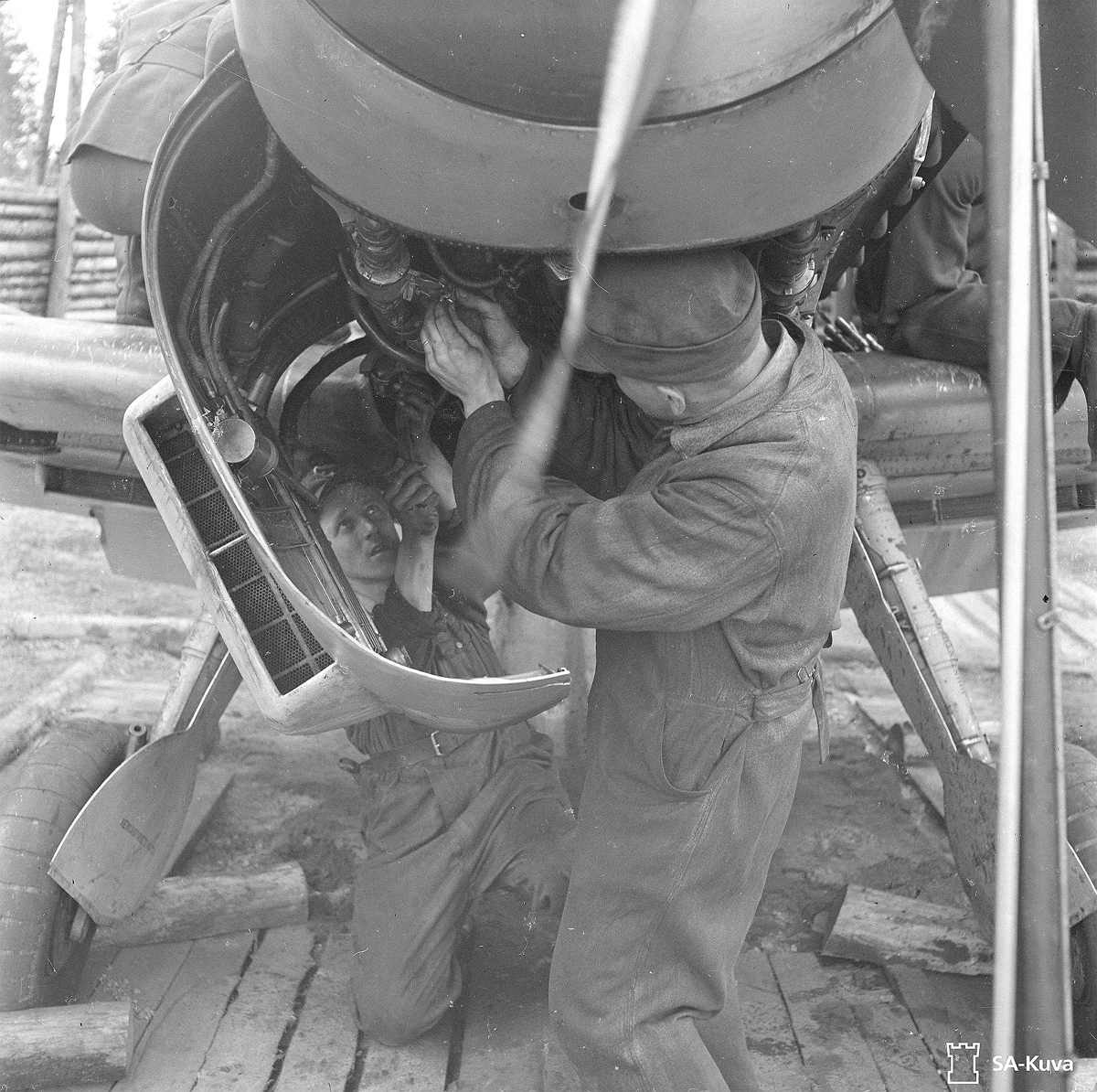 (Note Aircraft Tail Maneuvering Pipe Hole Beside Mechanic's Head)