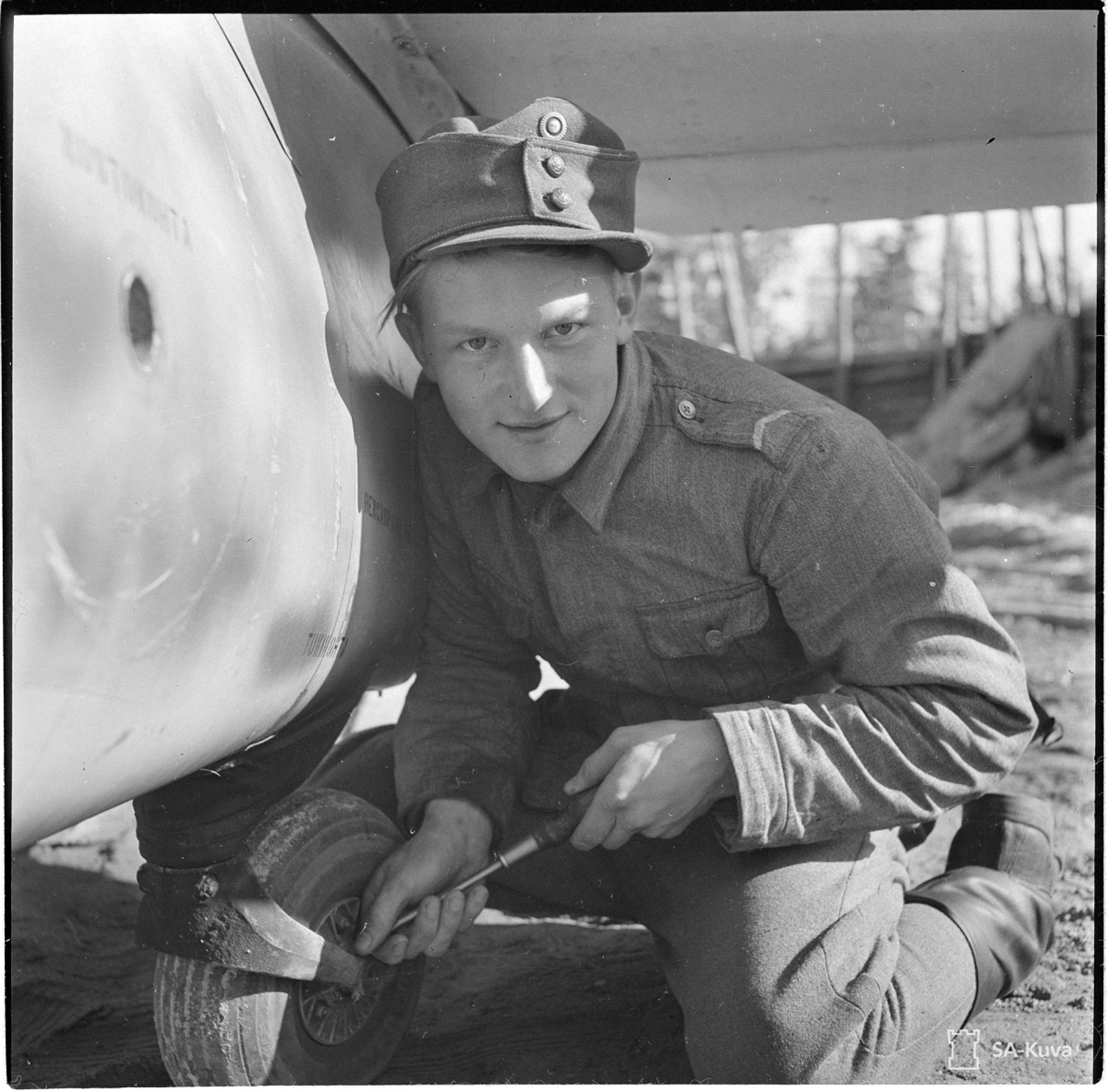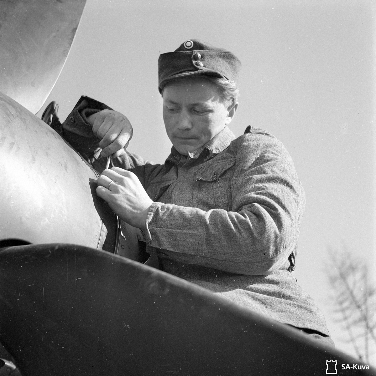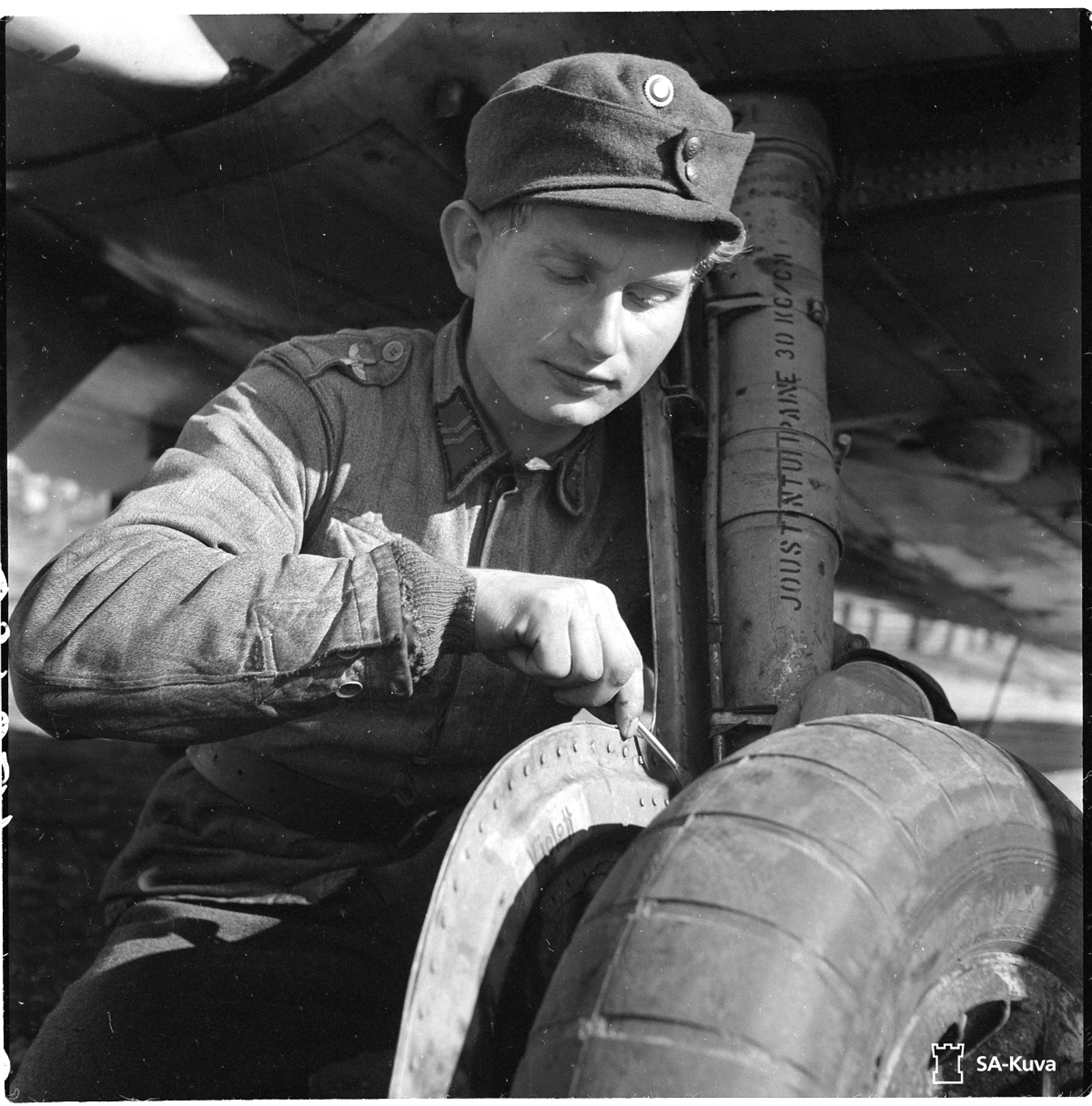 (Note Aircraft Tail Maneuvering Pipe Hole Beside Mechanic's Head)