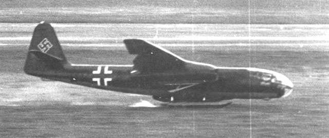 Ar234 V1 (TG+KB) WNr.130001 with Two Jumo-004A-0 Engines, After Landing, Ar234 V1 Slows & Loses Lift & Falls Over Onto Left Skid Under Left Jumo-004A-0 Engine Near the End