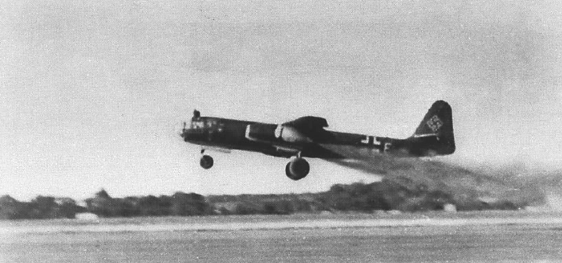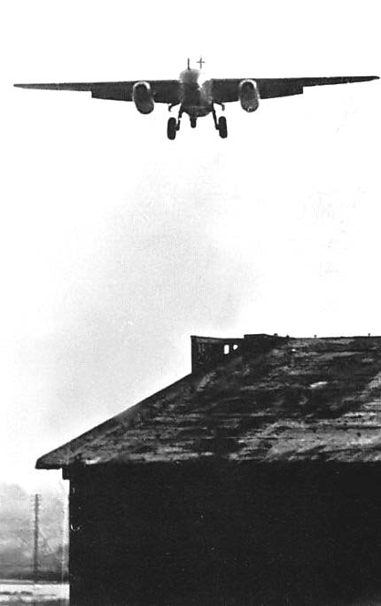 Ar234B-2 III./KG 76 On Landing Approach with Landing Gear & Flaps Down At Burg Airport, Germany December 1944