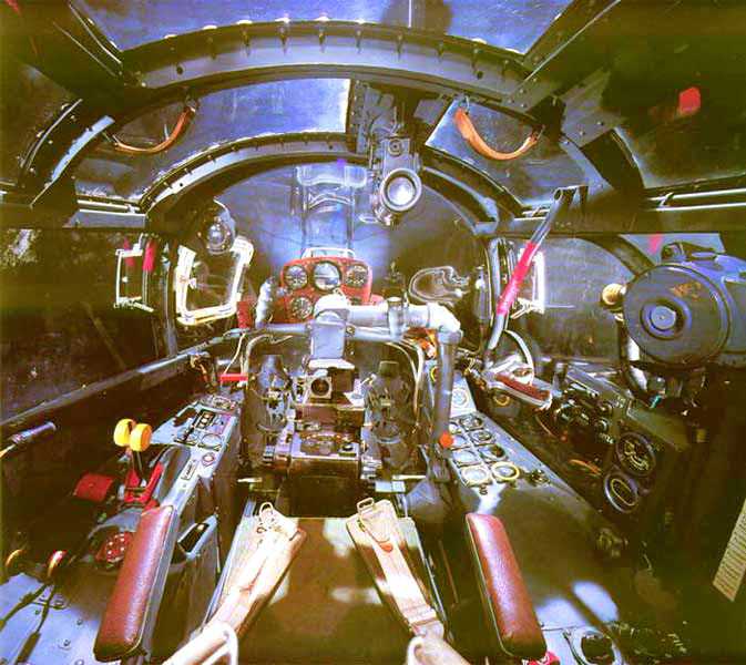 Ar234B-1 Reconnaissance Aircraft Cockpit with PV-1B Rear Vision Periscope At Top Right & In Central Front 6-Instrument Cluster Are: (Top3)Left=AirSpeed Indicator, Middle=Artifical Horizon, Right=Rate-of-Climb & (Bottom3)Left=Altimer, Middle=Gyro Compass, Right=FuG16ZY Homing Indicator & Periscope Is In Front of Two Engine Tachometers