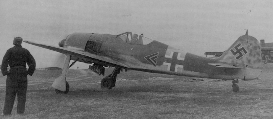 FW190A-6 Stab I./JG 54 (<<+) WNr.470004 Arado Built, Warnemünde (7.43-8.43) Flown By I-Gruppe Commander Hauptmann Walter 'Nowi' Nowotny & Despite Unit Badge Removals, Retained Small Lucky White 13 Under Cockpit At Orel, Russia 1943