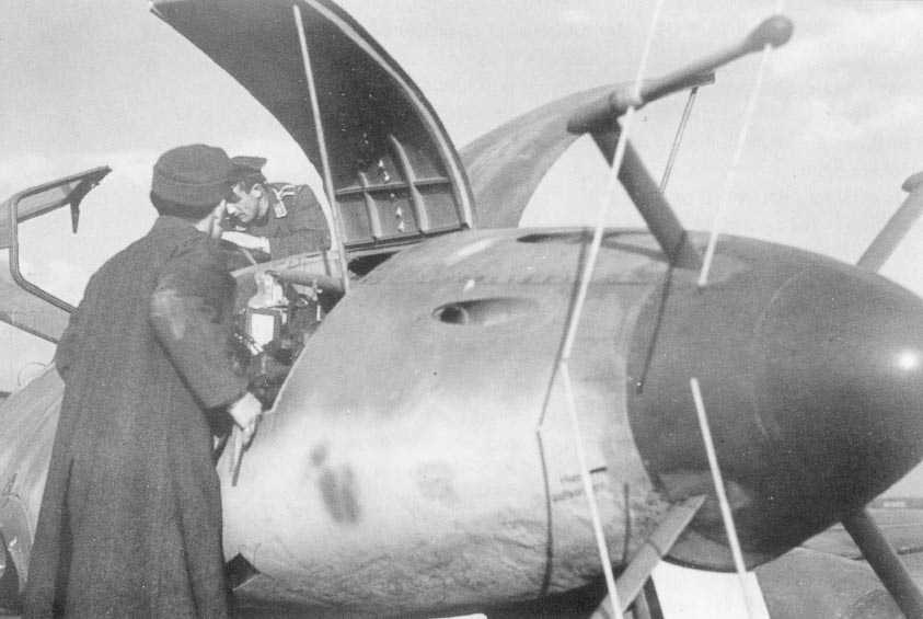 Nachtjager-Prototype V056 (KL+WJ) WNr.170056 with FuG218 Radar & Hirschgeweih 8-Dipole Antenna Receiving Maintenance with Messerschmitt AG Test Pilot Gerd Lidner Getting Ready to Enter Cockpit Germany 1945
