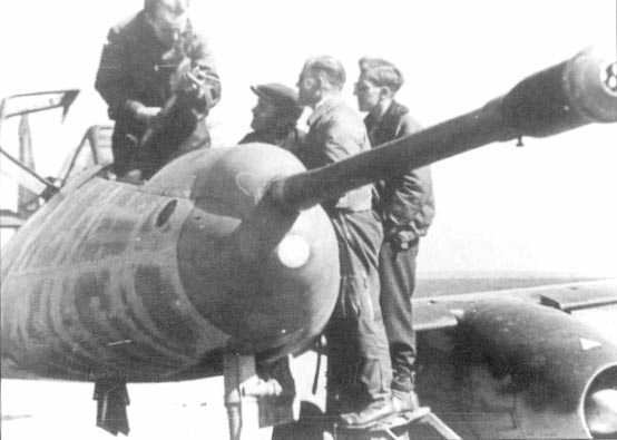 Me262A-1a/U4 (NZ+HT) WNr.111899 1st Tests of MK214A Rheinmetall Mauser 50mm Cannon After Poor Results of Rheinmetall BK5 On WNr.170083 (V083) with Disk Under Gun Barrel Being Gun Camera Window Germany
