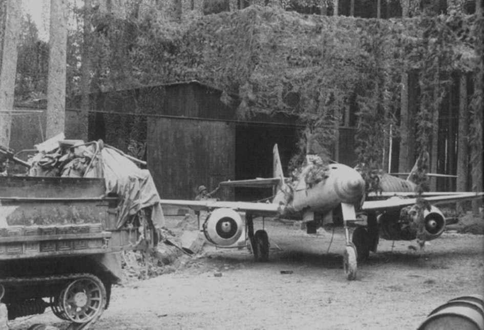 Me262A-1a Found At Kuno-II Waldwerk (Forest Factory) Next to USA Half-Track, This Factory Produced Five Planes Per Day From April 1944 to Almost Time of USA Capture On April 21, 1945